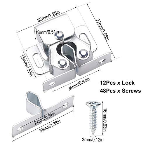 12 Pezzi Chiusura a Doppio Rullo Per Armadio Serratura a Doppio Rullo, Serratura Porta Armadio Chiusura Porta Armadio Chiusura a Doppio Rullo Per Mobil con 48 Viti