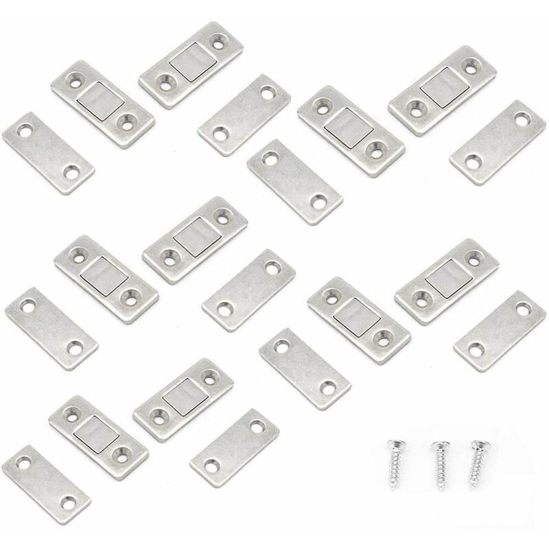 Design ultrasottile - Lo spessore complessivo è di soli 0,1 pollici e la forza magnetica massima è di 15 griglie. Questa chiusura per cassetti è abbastanza sottile da mantenere chiuse in modo sicuro le ante, i cassetti, i coperchi, le ante scorrevoli o le persiane delle piantagioni. Robusto e durevole - Materiale selezionato in acciaio inossidabile, migliore qualità, affidabile e durevole, anti- corrosione, anti-cracking, più resistente della plastica e maggiore durata. Può essere utilizzato in cucina, bagno o ambiente umido all'aperto. Facile da installare - Il robusto adesivo consente di installare facilmente la serratura magnetica senza trapano e serrare le viti, risparmiando tempo e fatica, e non danneggerà l'armadio o la porta e fornirà viti speciali corrispondenti. Forza magnetica forte - Ogni magnete dell'armadio ha una forte forza magnetica, quindi non è necessario preoccuparsi della porta, del cassetto e della finestra non essere chiuso ermeticamente. Le ante o i
