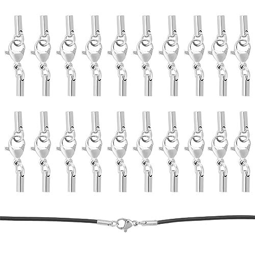 20 Pezzi Chiusura Moschettone in Acciaio Inox Fermagli Chiusura a Moschettone Fermagli, Chiusure Lobster Claw con Cord End Ganci Chiusure Creazione Braccialetti Bigiotteria Fai Da Te