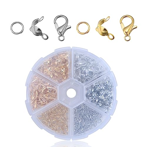 460 Pezzi Chiusure per Braccialetti, Kit Fermagli per Gioielli, Ganci Chiusure Moschettone con Anellini Aperti e Coperchio Nodo Punta, Ganci Moschettoni per Collane Bigiotteria Fai Da Te