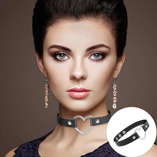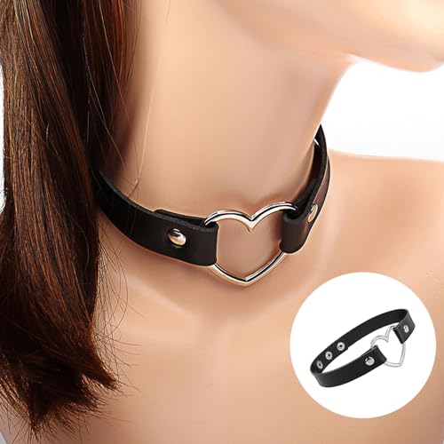 3 pezzi choker,collana girocollo in pelle PU con cuore, collana per donne,Ragazze Amano Cuore Choker Collare Di Cuoio Punk Cuore Fan Goth Collana A Catena. per donne e ragazze