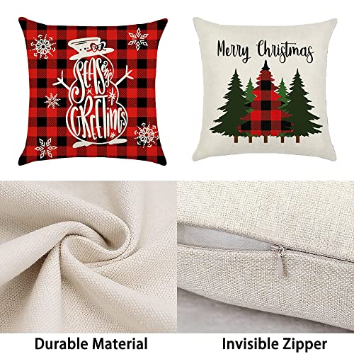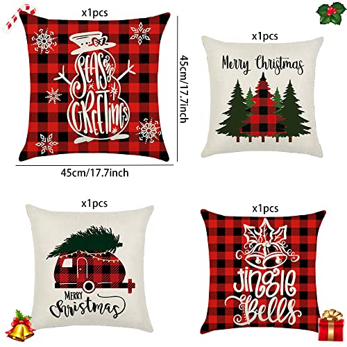 4 Pezzi Christmas Fodere per Cuscini,Federa Natalizia in Cotone e Lino,Cuscini Natalizia per Divano,Fodere per Cuscini Natale,Copricuscini Natalizi 45x45 cm