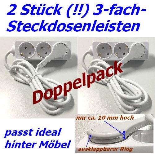 2 pezzi. Ciabatta elettrica a 3 prese con spina Schuko extra piatta, spina piatta che si inserisce facilmente dietro agli armadi, cavo di alimentazione 1,5 m, pacco risparmio, modello Webaso WSP2x-045400