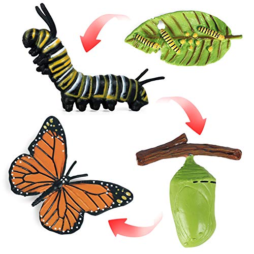 4 Pezzi Il Ciclo di Crescita della Farfalla Realistico, Simulazione Animale Statua Giocattolo Gioco cognitivo di apprendimento precoce dei bambini Decorazioni Regalo di Natale di compleanno