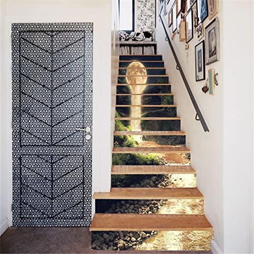 FLFK 13 pezzi 3D Cielo stellato dell'universo Autoadesiva Le scale alzata Adesivi Vinile decalcomania removibile adesivi per scale Casa decorazione 39,3 pollici x7,08 pollici (GXL2608_13pcs)