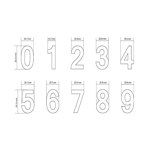 3. Elaborato con finitura elettrolitica, è resistente alla corrosione e alla deformazione. Non è facile svanire. Vieni con il numero da 0 a 9 per soddisfare le tue esigenze, facile da installare e rimuovere. Dimensioni corrette, facile da attirare l'attenzione.