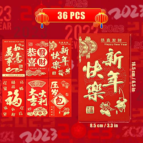36 Pezzi Cinesi di Buste Rosse Uste Rosse con Manico Buste Rosse Lettera Cinse 2023 Coniglio Hong Bao per Bambini