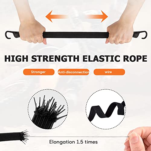【Design a doppio gancio】 Entrambe le estremità del cinturino elastico per bici sono dotate di ganci in acciaio al carbonio rivestiti in plastica ABS, possono fissare saldamente l'elastico, proteggere i tuoi effetti personali dai graffi, non devi preoccuparti di cadere.