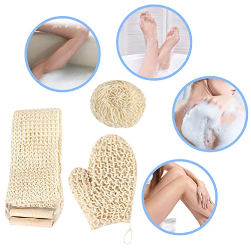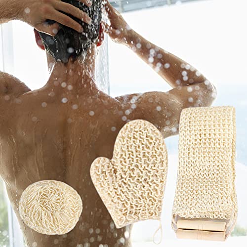 3 pezzi cinghia di lavaggio posteriore, guanti esfolianti di crin di canapa naturale spugna esfoliante schiena, rimuove la pelle morta efficace per il bagno della schiena corpo femminile e uomo