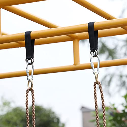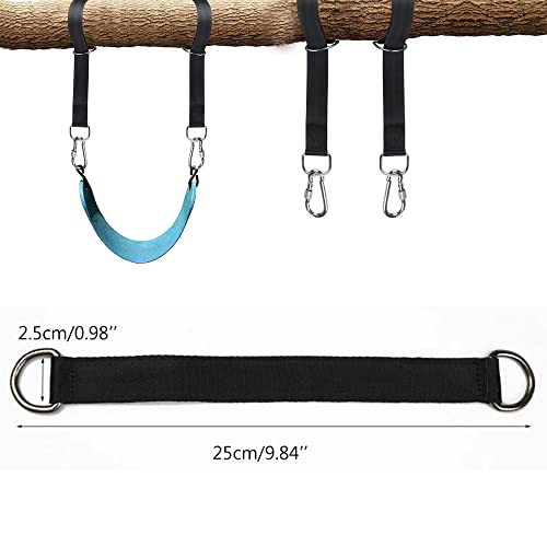 2 Pezzi Cinghie per Altalena Cinghie per Altalena Albero Cinghie per Amaca Portatile con 2 Moschettoni Anelli a D Kit di Sospensione Cinghia di Sicurezza Accessori per Amache Altalene,25cm(Nero)