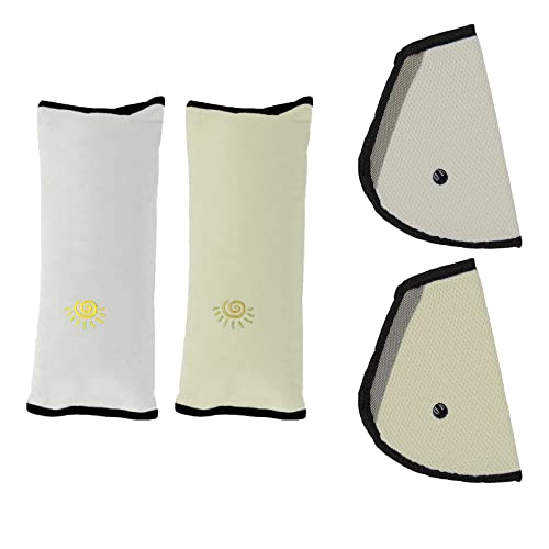 4 Pezzi Cintura Auto Bambini, Auto per Bambini Cuscino, Copri Cintura Sicurezza Auto, per Sostegno Sicuro Collo e Sonno (Grigio, Beige)