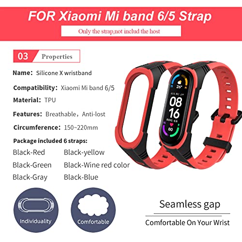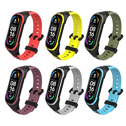BDIG 6 Pezzi Cinturino per Mi Band 6 Mi Band 5, Braccialetto Mi Band 6 Cinturino in Silicone Colorato di Ricambio Anti-Perso Progettato Accessori Tracker per Mi Band 5 Mi Band 6