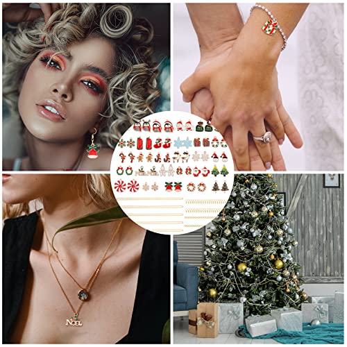 Contenuto del pacchetto: riceverai 58 pezzi di pendenti di Natale carini, anelli di salto aperti da 24 pezzi, ganci per orecchini da 24 pezzi e catene di collane da 5 pezzi.Vari elementi natalizi e quantità sufficienti possono soddisfare le esigenze dei tuoi gioielli.