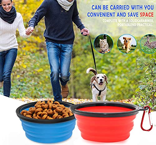 [Facile da Trasportare]-Otterrai 2 pezzi Ciotola Pieghevole Silicone. Ogni ciotola è dotata di un moschettone rigido, che può essere allacciato al passante per cintura, zaino, guinzaglio, valigia o qualsiasi altro luogo.