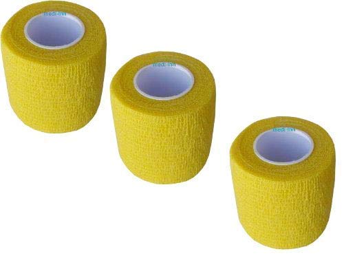 3 Pezzi Coesiva Cerotto Autoadesivo 5 cm x 4 M Bende Elastiche in Pellicola Vari Colori x Rieger - giallo