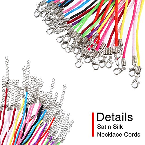 30 Pezzi Cavo Collana Corda Seta Cordoncino di Cuoio e 30 Pezzi Cavo Cuoio con Catena di Estensione e Catenaccio, 18 Pollici, 10 Colori