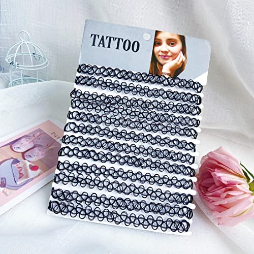 12 Pezzi Collana Girocollo Tatuaggio, Set Collana Girocollo, Set Girocollo Ragazza, Collana Girocollo in Colori Misti, Collana Tatuaggio Elasticizzato Vintage Moda, per ragazzi e ragazze