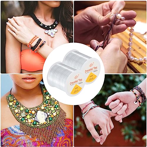 2 pezzi 100m Filo per Collane Braccialetti,Trasparente Filo Elastico per Bracciali,1mm Filo Esistente Fil di Ferro Creazioni Elastico Pesca per Appendere per Braccialetto Craft Gioielli Rendendo Corda