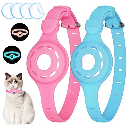 2 Pezzi Collare per Gatti Airtag, Morbido e Comodo Regolabile Collare per Gattino e Gatto insieme a Pellicola HD, Luminoso Impermeabile Airtag Collare per Gatti