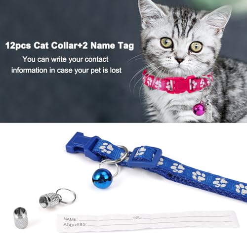 12 Pezzi Collare Gatto Regolabile, Collare per Gatti con Campanello e Targhette per Il Nome, Collarino Gatto Antistrozzo Collarette per Gatti, Adatto alla Maggior Parte dei Gatti
