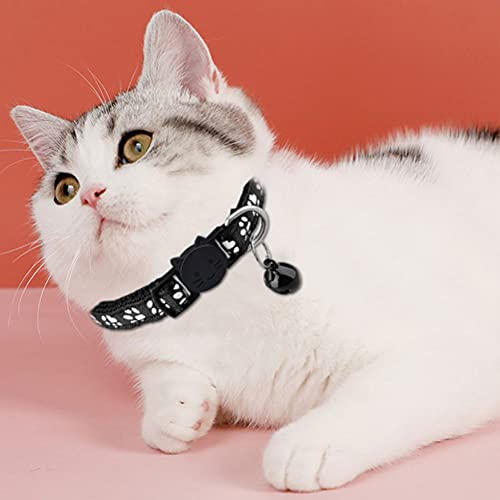 2 Pezzi Collare per Gatto Riflettente, Collare Gatto Elastico Antistrozzo Collarino Gatto Personalizzato, Collare per Gatto con Campanella (Nero)