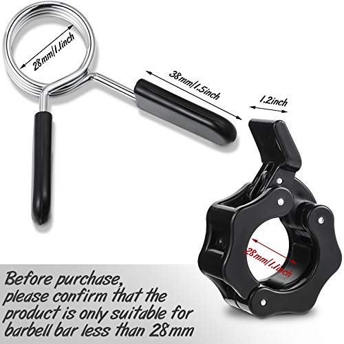 2 Pezzi Clip per Colletto a Molla Clip di Blocco con Manubri e 2 Pezzi Collari per Bilanciere Morsetti per Bilanciere per Bilanciere Palestra Sollevamento Pesi (1,1 Pollici/ 28 mm, Nero)