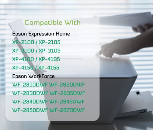 Compatibilità Garantita: Compatibile con Epson Expression Home XP-2100 XP-2105 XP-2150 XP-2155 XP-3100 XP-3105 XP-3150 XP-3155 XP-4100 XP-4105 XP-4150 XP-4155, Epson WorkForce WF-2810DWF WF-2820 DWF WF-28. 30DWF WF-2835DWF WF-2840DWF WF-2845DWF WF-2850DWF WF-2870DWF.