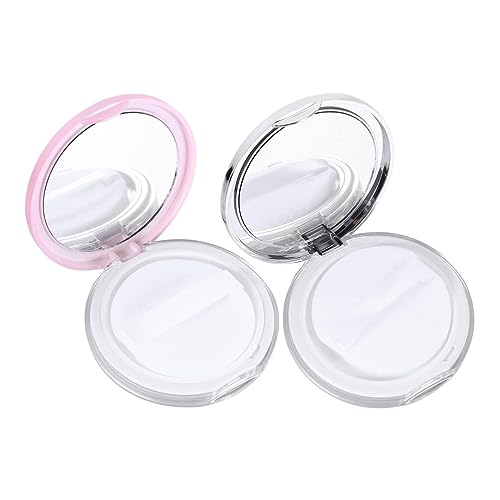 2 Pezzi Compatte Custodie Vuote Sfusa Polvere Con Specchio Schermo Elastica Spugna Rete Per Portatile Viaggio Trucco Kit Donne Ragazze (Argento, Rosa)