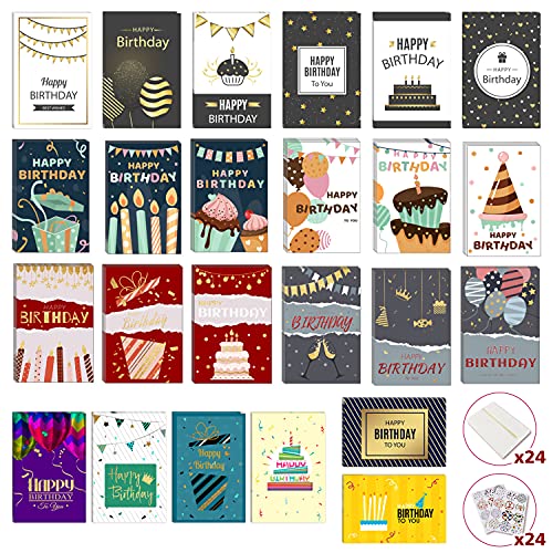 24 Pezzi Buon Compleanno Carte Con 24 buste, Biglietti di Compleanno, TOCYORIC Buon Compleanno Carte Multipack Biglietti di auguri con buste con design diverso
