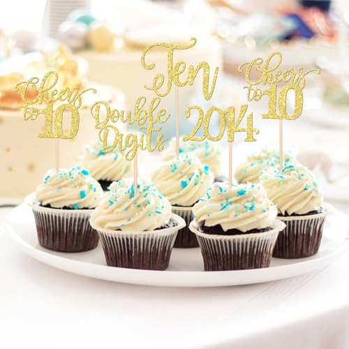 24 pezzi 10 compleanno cupcake toppers glitter dieci dal 2013 Double Digits 10 cupcake Picks Ciao 10 anni decorazioni per torte di compleanno per il 10° compleanno anniversario festa oro