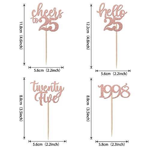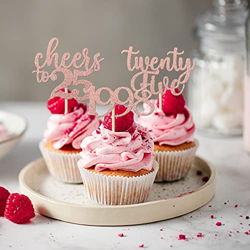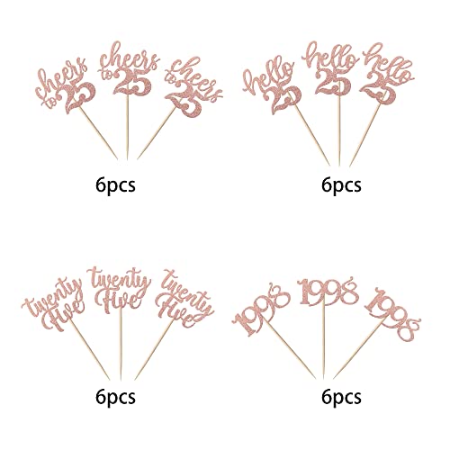 24 pezzi 25 compleanno Cupcake Toppers Glitter Twenty-five dal 1998 Prost su 25 cupcake Picks Ciao 25 anni Decorazioni per torte di compleanno per 25 compleanno anniversario festa oro rosa