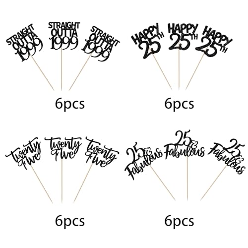 APPLICAZIONE: decorazione perfetta per cupcake, biscotti, torte, frutta, brownies, gelato e altro ancora, particolarmente adatta per la festa a tema Straight Outta 1998, saluti a festa a tema 25 anni, festa a tema 25 anni, festa a tema, 25 anni. Anniversario di matrimonio, festa a tema, 25 decorazioni per cupcake
