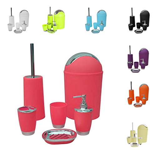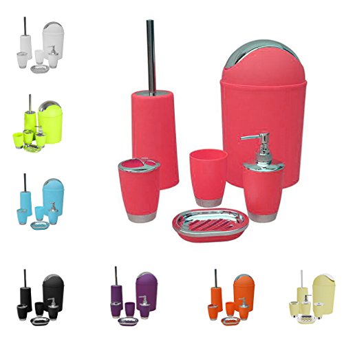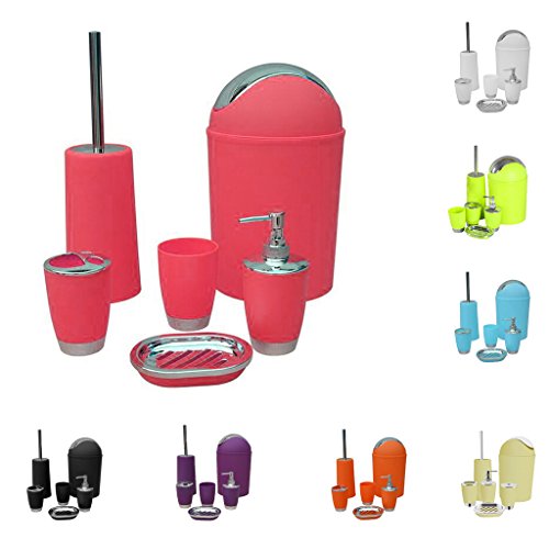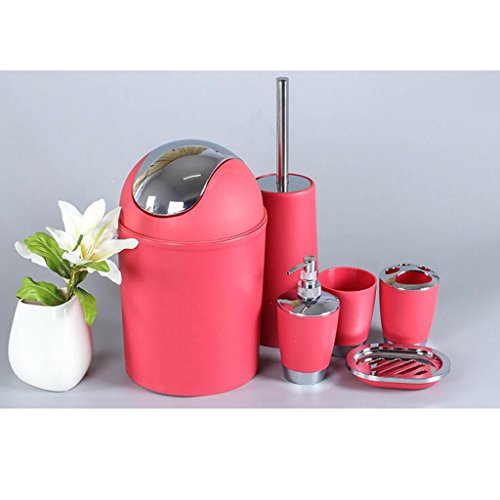 Set 6 Pezzi Completo Bagno Accessori in Plastica Lusso Solido Porta Sapone Dosatori - Rosso