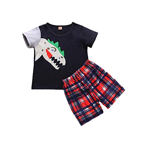 2 Pezzi Completo Bambino Set Camicia Magliette Estive Stampa Coccodrillo + Pantaloncini Bambino Stampa a Plaid 1-7 Anni (Rosso, 4-5 Anni)