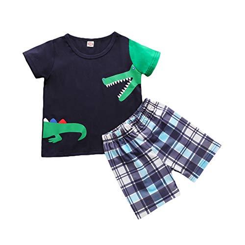 2 Pezzi Completo Bambino Set Camicia Magliette Estive Stampa Coccodrillo + Pantaloncini Bambino Stampa a Plaid 1-7 Anni (Blu, 1-2 Anni)