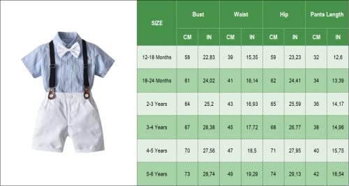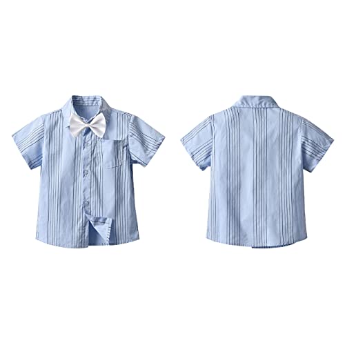 3 Pezzi Completo Bambino 1-6 Anni Tuta Gentleman 3 PCS Set Suit Estivo Camicia a Manica Corta + Pantaloncini in Tinta Unita con Bretelle + Papillon per Cerimonia Nozze Battesimo (Righe, 4-5 Anni)
