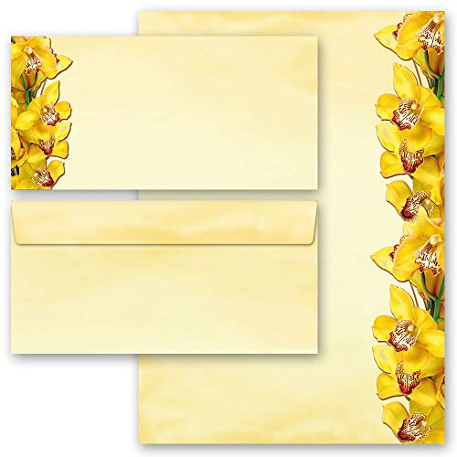 Set di cancelleria Fiori & Petali, ORCHIDEE GIALLE | Ordine in linea! | 10 pezzi Carta da lettera ez 10 buste (senza finestra)
