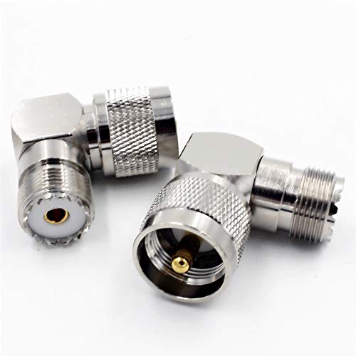 2 pezzi di connettore UHF maschio a femmina UHF ad angolo retto SO239 PL259RF, adattatore in rame nichelato puro