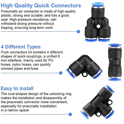 40 pezzi Connettore Raccordi Rapidi da Pneumatico Attacchi Rapidi Aria Compressa Aria Spingere In per Collegare Tubo Raccordo in Plastica 6mm Include 4 Tipi di Connettore da Pneumatico