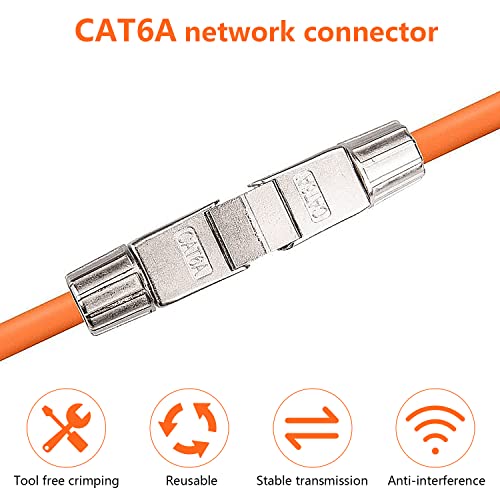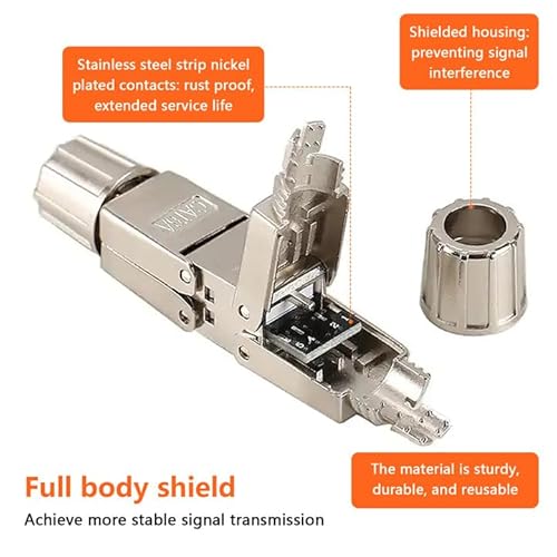 Facile da installare: Connettore di testa del cavo di rete Cat6 A è facile da installare, non richiede attrezzi. Non sono necessari strumenti di crimpatura speciali per le estremità dei cavi. Quando l'alloggiamento viene chiuso, i fili vengono automaticamente premuti contro il modulo.