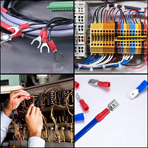 La confezione include: riceverai un assortimento di 280 terminali per cavi, 15 tipi di terminali isolati nelle dimensioni più comunemente utilizzate, inclusi connettori ad anello, a forcella, a forcella, a forcella, elettrici a crimpare.