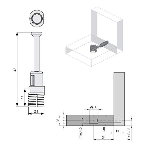 Connessione stabile degli angoli dei componenti in legno grazie al tassello ad espansione sul bullone. Quando l'eccentrico viene girato, il tassello si espande sul bullone e assicura così una connessione molto stabile