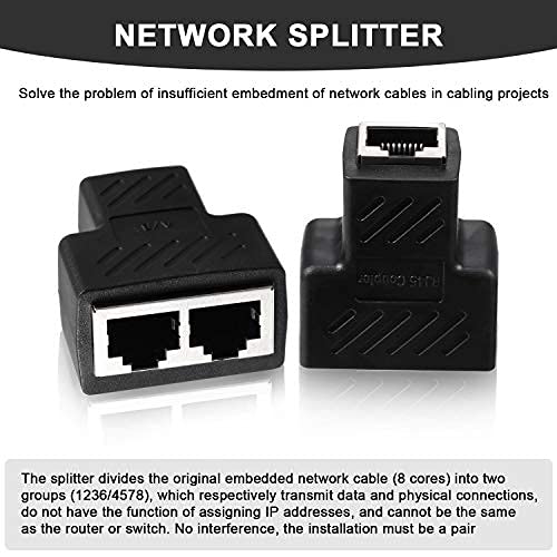 Nessuna preoccupazione per i danni: i connettori dello splitter Ethernet RJ45 possono dividere un cavo di rete in due uscite, due computer possono navigare in Internet contemporaneamente, funzionano bene per schermare l'EML/ PFL esterno per prevenire danni e altre interferenze elettromagnetiche, splitter Ethernet affidabile l'adattatore assicura che tu possa usare la ret