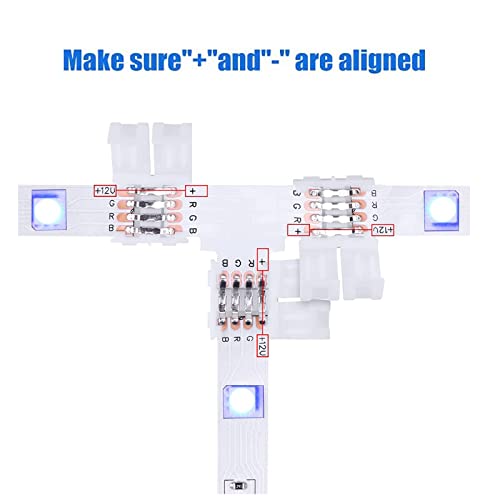 【Facile da installare】Basta inserire la striscia luminosa a LED nella chiusura con i 4 contatti della striscia LED sotto i 4 poli del connettore - assicurarsi che il lato + della striscia sia allineato con il lato + della chiusura