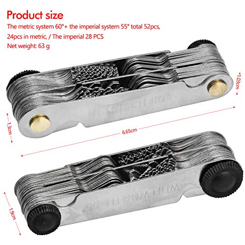 52 Pezzi Contafiletti Precise di 60 Gradi e 55 Gradi in Acciaio Inox per Viti, Calibro Filettatura Combinato 0,25 -6 mm / 4-62g in Misurazione Metrica e Whitworth