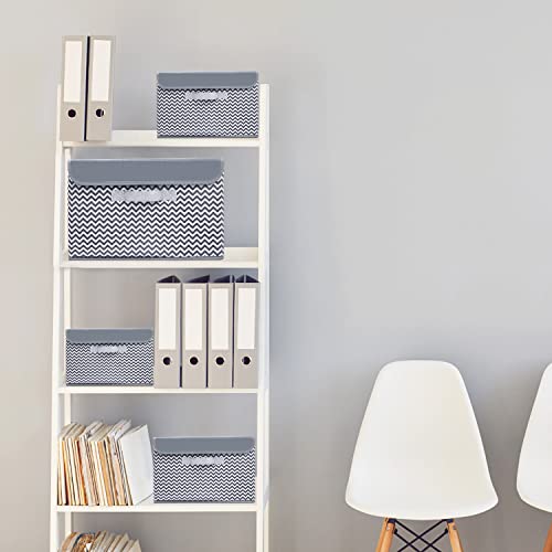 DIMJ 3 Pezzi Contenitori con Coperchio, Scatole Portaoggetti Pieghevoli, Scatole Armadio in Tessuto con Manici, Grigio Chiaro