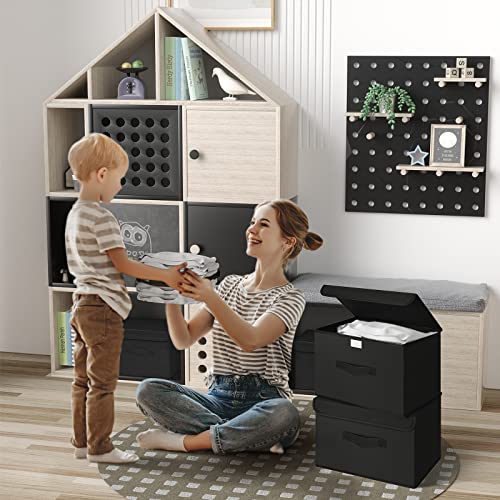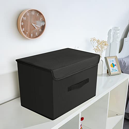 DIMJ 2 Pezzi Contenitori con Coperchio, Scatole Portaoggetti Pieghevoli, Cubo di Stoccaggio in Tessuto con Manici, per Vestiti, Scarpe,Armadi,Camere da Letto a Casa, Nero