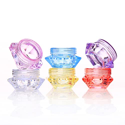 【Set di Barattoli per Crema】 Ti forniamo 6 barattoli per campioni vuoti diamantati con coperchi, 1 pezzo ciascuno di trasparente/giallo/blu/viola/rosso/rosa, la capacità è di 5 g, il diametro del barattolo di crema è di 33 mm, il diametro interno è di 22 mm di altezza. La quantità e le dimensioni soddisfano le tue esigenze quotidiane.