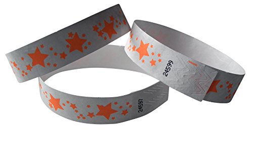 100 pezzi di controllo Tyvek Braccialetti 19 mm di larghezza x 255 mm lunghezza - Stampato con Stelle