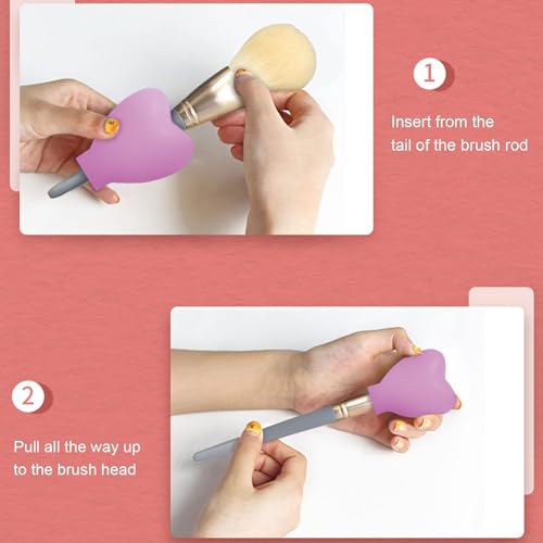 3 pezzi di copertura per pennelli da trucco, coperture per spazzole cosmetiche a forma di cuore in silicone per donne e ragazze(Rosa)